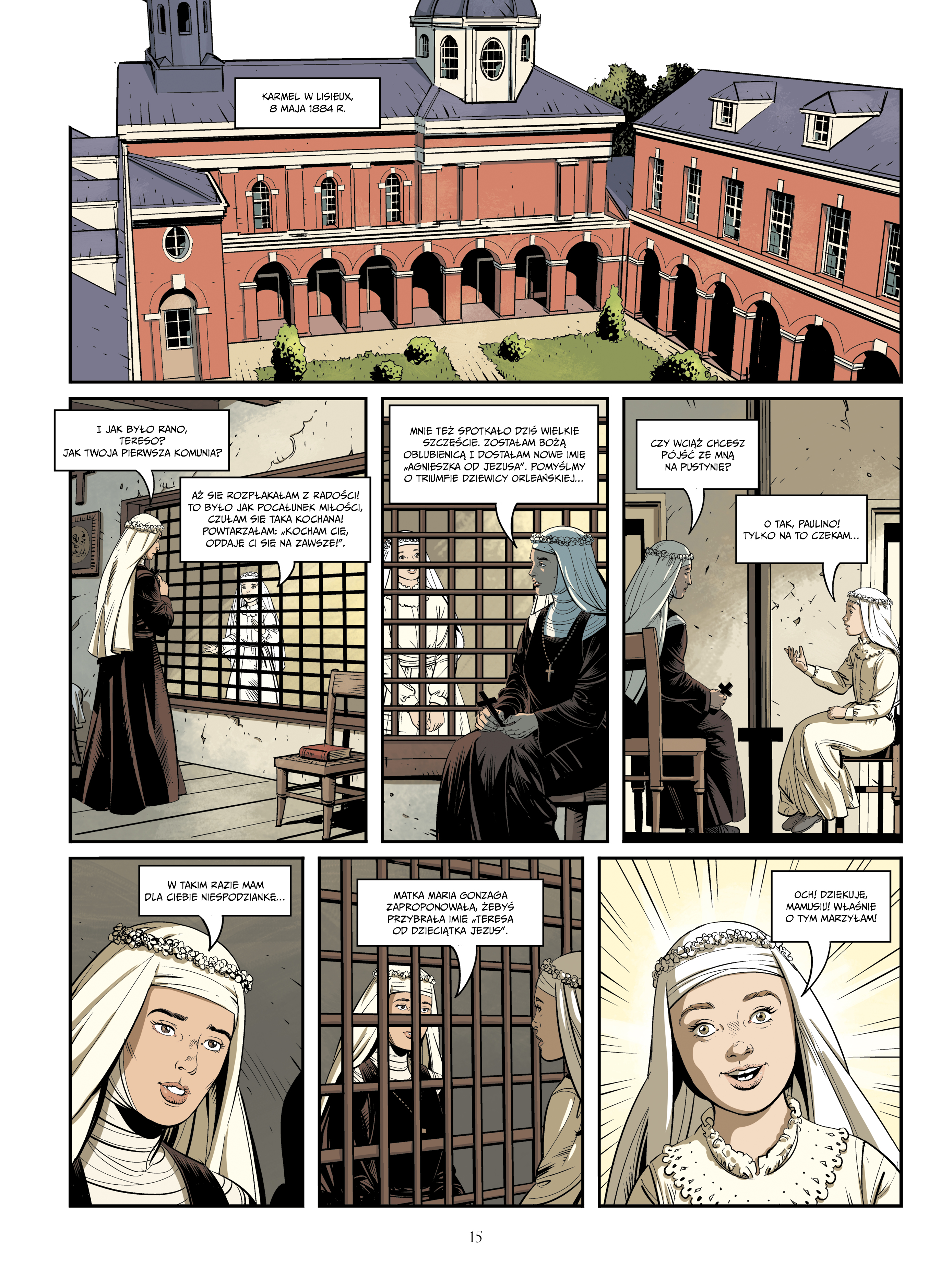 Komiks o życiu św. Teresy z Lisieux: dzieciństwo Teresy Martin, powołanie, życie w karmelu. Narracja biograficzna przeplatana z wyimkami z pism św. Teresy, które ilustrują jej duchową „małą drogę” do świętości.